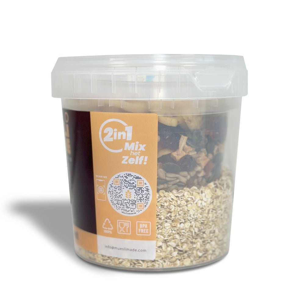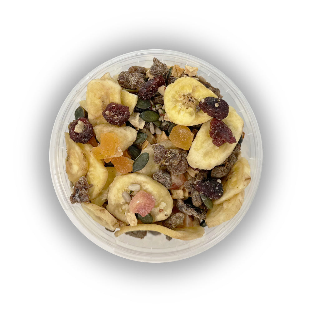Een uitgebalanceerde combinatie met een stevige beleving. Knapperige banaan met een bite. Fris en vol door de smaak van de appel en de cranberries. Aangevuld met fluwelen papaya en zachte dadel. Gemengd met fijne havervlokken een grondige basis!
